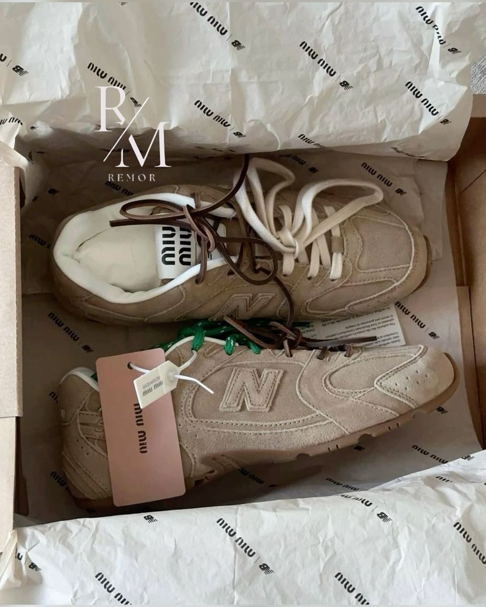 뉴발란스 X 미우미우 스웨이드 및 메쉬 스니커즈